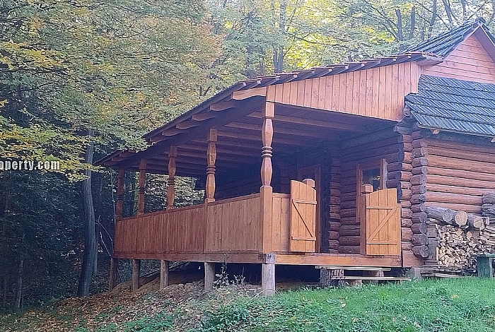 котедж перекритий натуральною драницею, всередині все екологічно з дерева (вагонка, підлога, вікна, двері);